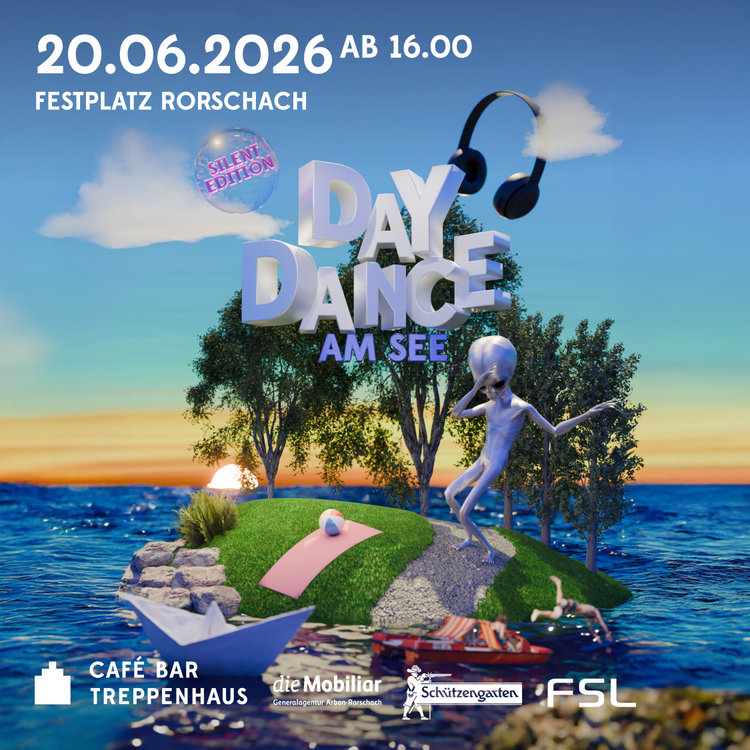 „Der Daydance am See ist zurück auf dem Festplatz Rorschach! Zwischen Segelhafen und Würth Haus wird wieder getanzt und gefeiert – direkt neben dem Bahnhof, direkt am Wasser, direkt im Sommermodus.