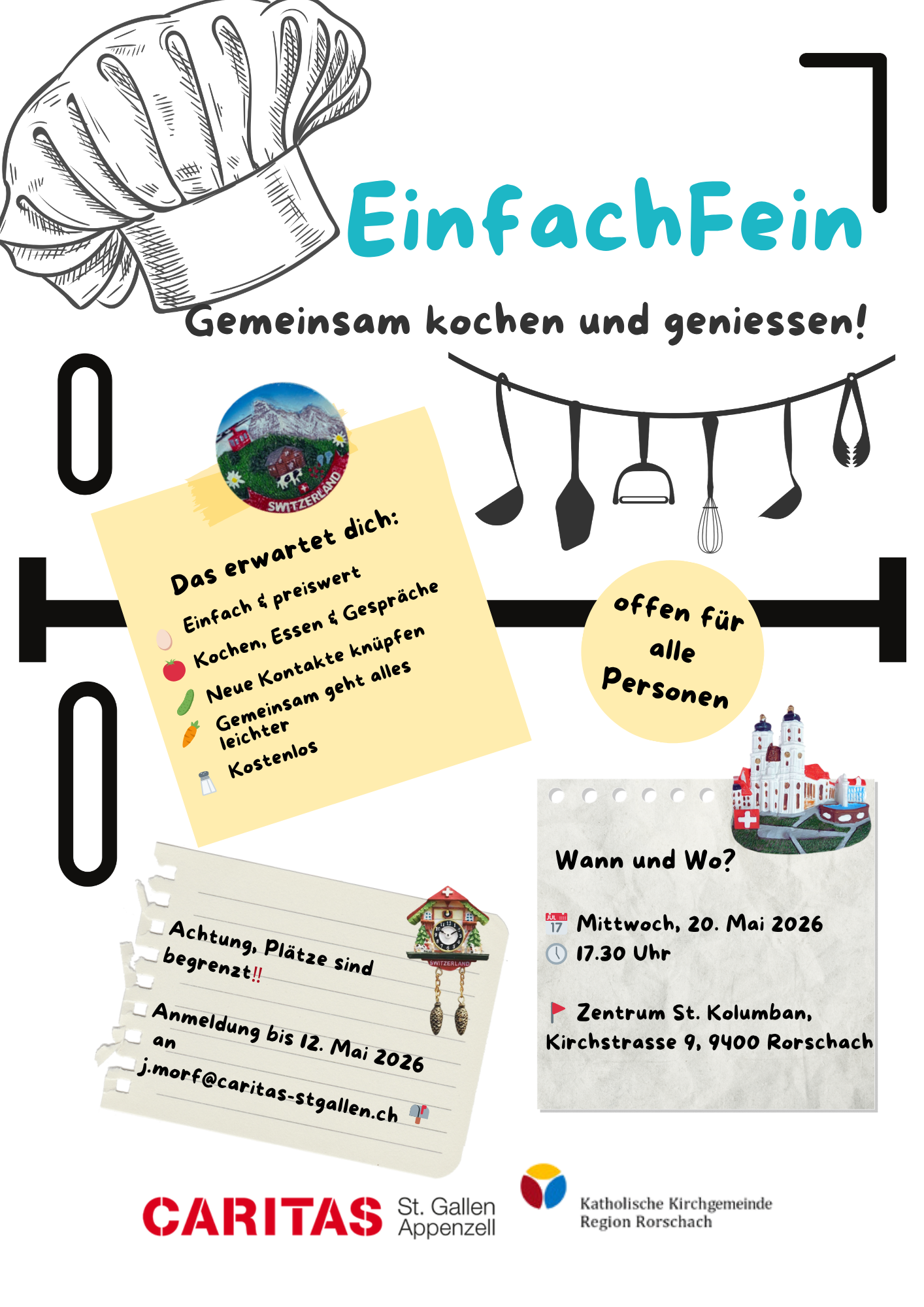 Bei EinfachFein sind alle willkommen – egal ob alleine, mit Familie und unabhängig vom Budget. Wir kochen, essen und räumen gemeinsam auf, denn zusammen ist vieles einfacher. Die Teilnahme ist […]