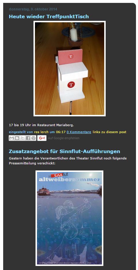 Wie doch die Zeit vergeht … Man findet die insgesamt über 8000 Beiträge auf der rechten Spalte im „Blog-Archiv“. Und der „TreffpunktTisch“ findet immer donnerstags statt. 2013 war der 9.10….