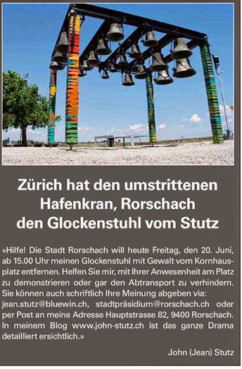 Gestern wurde die Glockeninstallation von John Stutz auf dem Platz vor dem Kornhaus entfernt. Mal schauen, wie weit uns diese Geschichte noch durch den Sommer begleitet … Hier nochmals der…