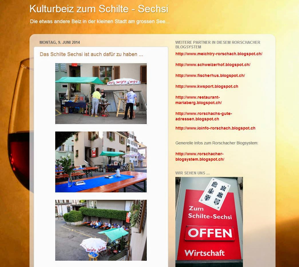 Ich werde diese Woche jene Betriebe vorstellen, die sich seit nunmehr einigen Monaten am Rorschacher Blogsystem beteiligen. Ich beginne mit dem Schilte Sechsi, der kleinen smarten Beiz auf dem Lindenplatz…