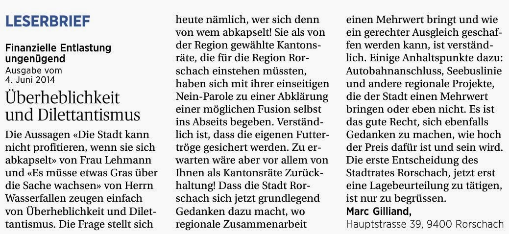 Heute im Tagblatt. Nimmt mich dann nur noch wunder, ob man Lehmann und Wasserfallen am nächsten Wochenende auch noch am Stadtfest ertragen muss …