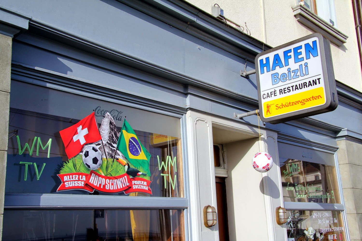 Übermorgen geht mit dem Startspiel ab 22 Uhr zwischen Brasilien und Kroatien die Fussball-WM los. Die Beizen sind – wie hier an der Hafenmeile – für diesen Grossevent gerüstet. Der…