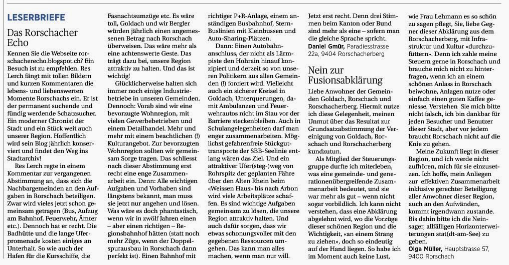 Jetzt hat es das Rorschacher Echo schon in die Leserbriefspalten geschafft. Danke für das Feedback, Dani!