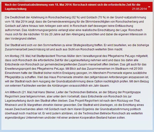Auch der Stadtrat Rorschach reagiert auf das Abstimmungsergebnis vom letzten Sonntag und will regionale Projekte vorderhand auf Eis legen. Er hat gestern die entsprechende Pressemitteilung verschickt. Der direkte Link >>…