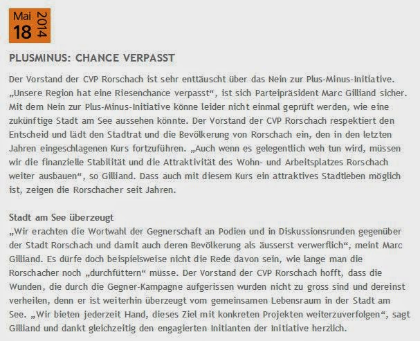 Die CVP hat auf ihrer Homepage Stellung zur gestrigen Abstimmung genommen. Klare Worte. Zu finden auch auf >> www.cvp-rorschach.ch