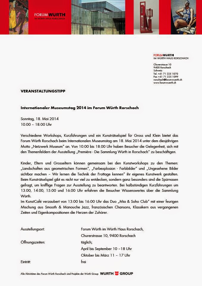 Morgen Sonntag zu den üblichen Öffnungszeiten und mit speziellen Anlässen.
