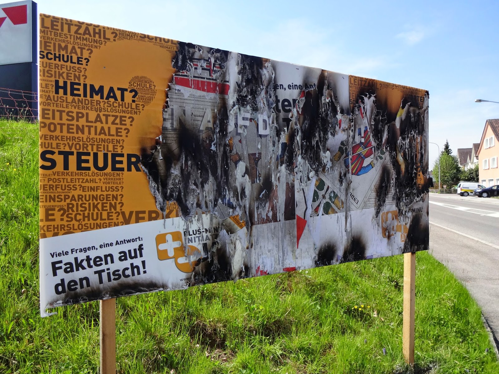 In der Nacht auf heute sind auf dem Gebiet der Gemeinde Rorschacherberg zwischen 00.30 Uhr und 01.30 Uhr an verschiedenen Örtlichkeiten zwei Wahlplakate angezündet worden. Ein erstes brennendes Plakat wurde…