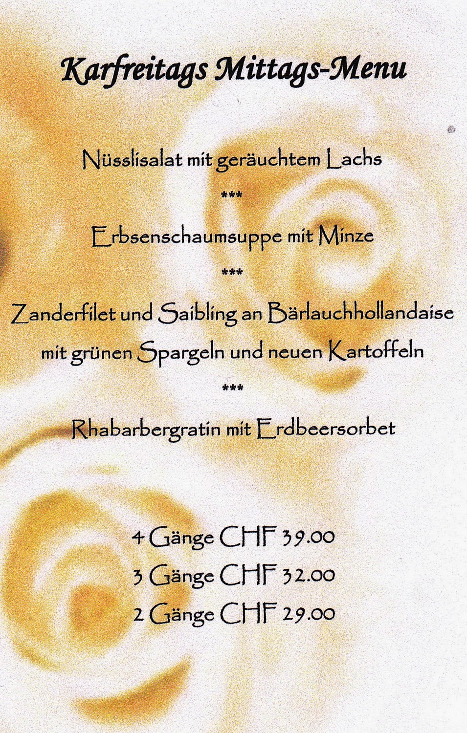 … und hüt gits natürli es feins Karfritigsmenue. Mir gönd uf jede Fall emol go probiere …