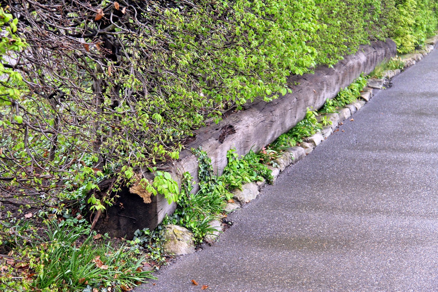 Am Veloweg zwischen Idyll und Kornhaus. Es gibt Leute, die behaupten, dass dieser Stamm bereits seit 30 Jahren da liegt. Man scheint ihn echt vergessen zu haben …