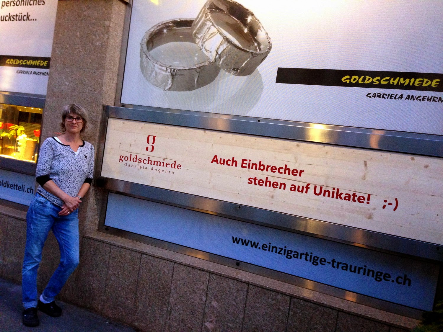 Aus aktuellem Anlass feiert das neue Firmenlogo von Goldschmiedin Gabriela Angehrn unerwartet früh seine Premiere. Grund: Erfolgloser Einbruchversuch bei ihrem Geschäft an der Hauptstrasse 63 in der Nacht von Sonntag…