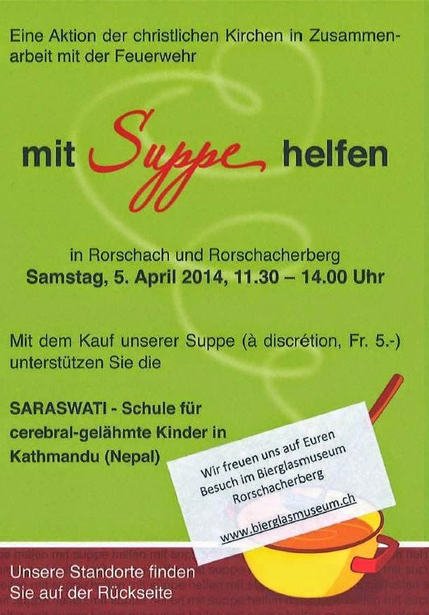 Suppenzmittag für eine gute Sache an verschiedenen Stellen der Region (wie hier auf dem Trischliplatz in Rorschach). En Guete!!