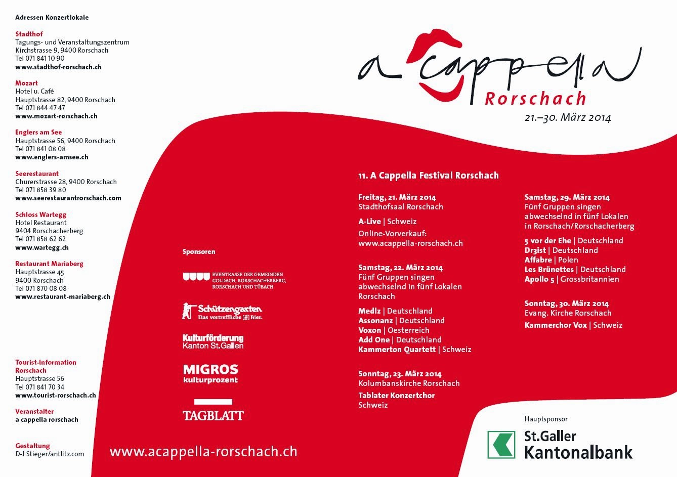 Start am Freitag im Stadthof, am Samstag dann auch im Mariaberg, Englers am See, Mozart, Seerestaurant und Schloss Wartegg. Traditionell sind diese Konzerte sehr schnell ausverkauft. Es lohnt sich, den…