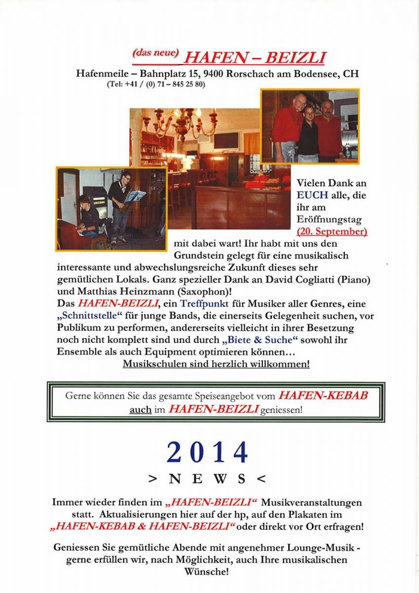 Heute Abend wird im Hafenbeizli an der Rorschacher Hafenmeile (Bahnplatz 15) wieder ein Livekonzert geboten.