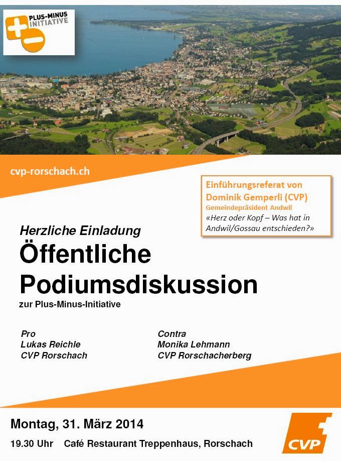 Montag, 31. März 2014, im Treppenhaus Rorschach. Da bin ich ja mal gespannt. Anmelden kann man sich auch über die Facebookseite der CVP Rorschach >> https://www.facebook.com/events/209818059213670/ Ich gehe mal davon…