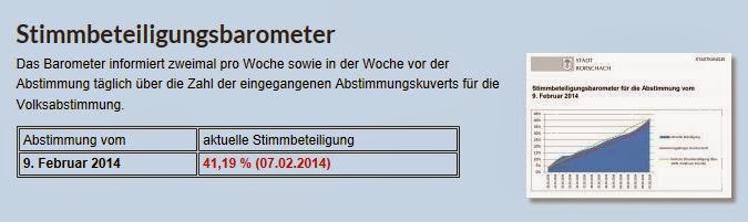 Heute Freitag beträgt die Stimmbeteiligung in Rorschach sage und schreibe bereits 41,19 % für die Abstimmung vom Sonntag. Somit liegt die Stimmbeteiligung über dem langjährigen Durchschnitt und jetzt fast gleich…