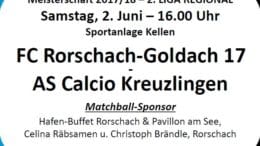 Gestern trennten sich der FC Rorschach-Goldach 17 und die AS Calcio Kreuzlingen auf den Sportanlagen Kellen mit 1:1. Den Ausgleich musste das FC RG 17 erst in der Nachspielzeit hinnehmen….