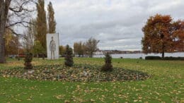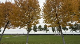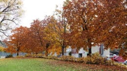 Auffällig ist aber, dass im Seepark die Bäume an der Bahnschiene schön verfärbt sind, jene am See aber noch im grünen Gewand stehen.
