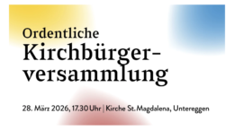 Am Samstag, 28. März 2026, findet ab 17.30 Uhr die ordentliche Kirchbürgerversammlung der Katholischen Kirche Region Rorschach in der Kirche St.Magdalena in Untereggen statt. Weitere Informationen wie Geschäftsbericht etc. findet…