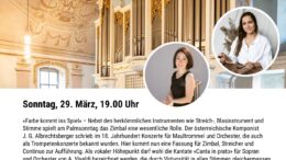 „Farbe kommt ins Spiel“ beim Programm des diesjährigen Palmsonntagskonzertes. Nebst den „herkömmlichen “ Instrumenten wie Streich-, Blasinstrument und Stimme spielt am Palmsonntag das Zimbal eine wesentliche Rolle. Das Zimbal ist…