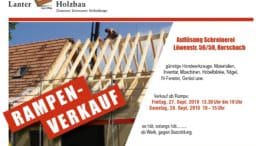 Durch die Auflösung der Schreinerei (aber aufgepasst: Die Lanter Zimmerei innerhalb der Lanter Holzbau AG bleibt weiterhin bestehen!) findet heute zwischen 13.30 und 18 Uhr sowie morgen Samstag von 10…