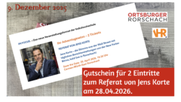 Die Ortsbürger Rorschach verschenken heute in ihrem Adventskalender je einen Gutschein von der Pizzeria Gemelli im Wert von Fr. 75.00 und einen Gutschein für einen Einkauf bei Timon Görtz im…