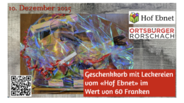 Die Ortsbürger Rorschach verschenken heute in ihrem Adventskalender einen Geschenkkorb vom „Hof Ebnet“ im Wert von 60 Franken. Viel Glück!
