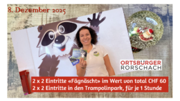 Die Ortsbürger Rorschach verschenken heute in ihrem Adventskalender gleich zwei Geschenksgutscheine à je 60 Franken für das Fägnäscht und den Trampolinpark. Viel Glück!