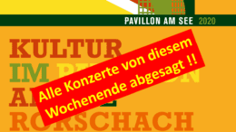 Die Wetterprognosen sind für dieses Wochenende gelinge gesagt desaströs. Deshalb haben sich die InitiantInnen von „Kultur im Pavillon am See Rorschach“ frühzeitig entschieden, alle 3 Livekonzerte vom letzten Eventwochende abzusagen….