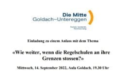 Die Präsidentin der Partei „Die Mitte Goldach-Untereggen“ hat dem Rorschacher Echo noch nachstehende Mitteilung zukommen lassen. Der Anlass findet am Mittwoch, 14. September 2022, ab 19.30 Uhr in der Aula…