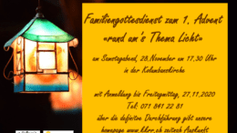 Vormerken: Die Familiengottesdienstgruppe hat nachstehende Zeilen verfasst: „Wenn es draussen früh dunkel ist und die Blätter von den Bäumen gefallen sind, dann kommt er bald – der Advent! Am Samstagabend,…