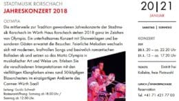 Die beiden Konzerte der Stadtmusik Rorschach im Carmen Würth-Saal in Rorschach finden am 19. und 20. Januar 2019 statt. Details findet man hier.
