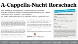 Das ganzseitige Inserat ist am Samstag im Tagblatt erschienen. Die Tickets kann man nur bis am kommenden Mittwoch, 14.02., 12 Uhr, gewinnen. Die 1. Rorschacher a-cappella-Nacht findet am Samstag, 3….